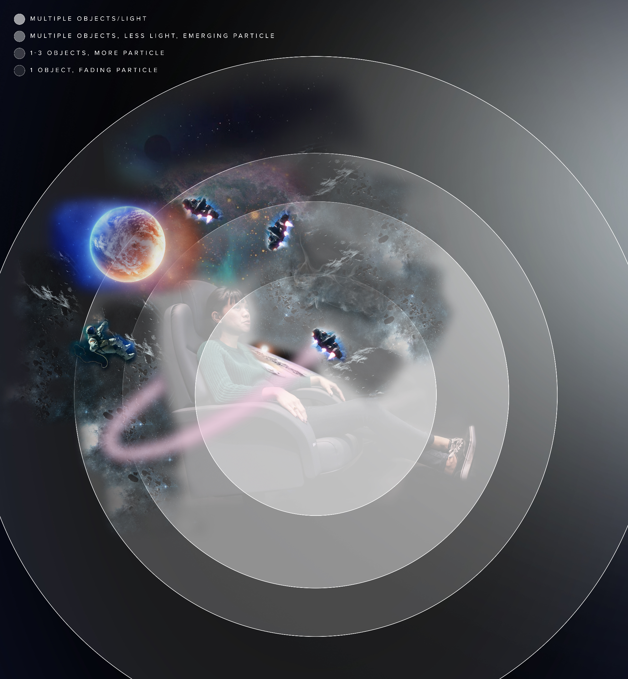Prepared diagrams ahead of shoot for the production crew illustrating the desired density of visual effects and an idea of space around the subject.